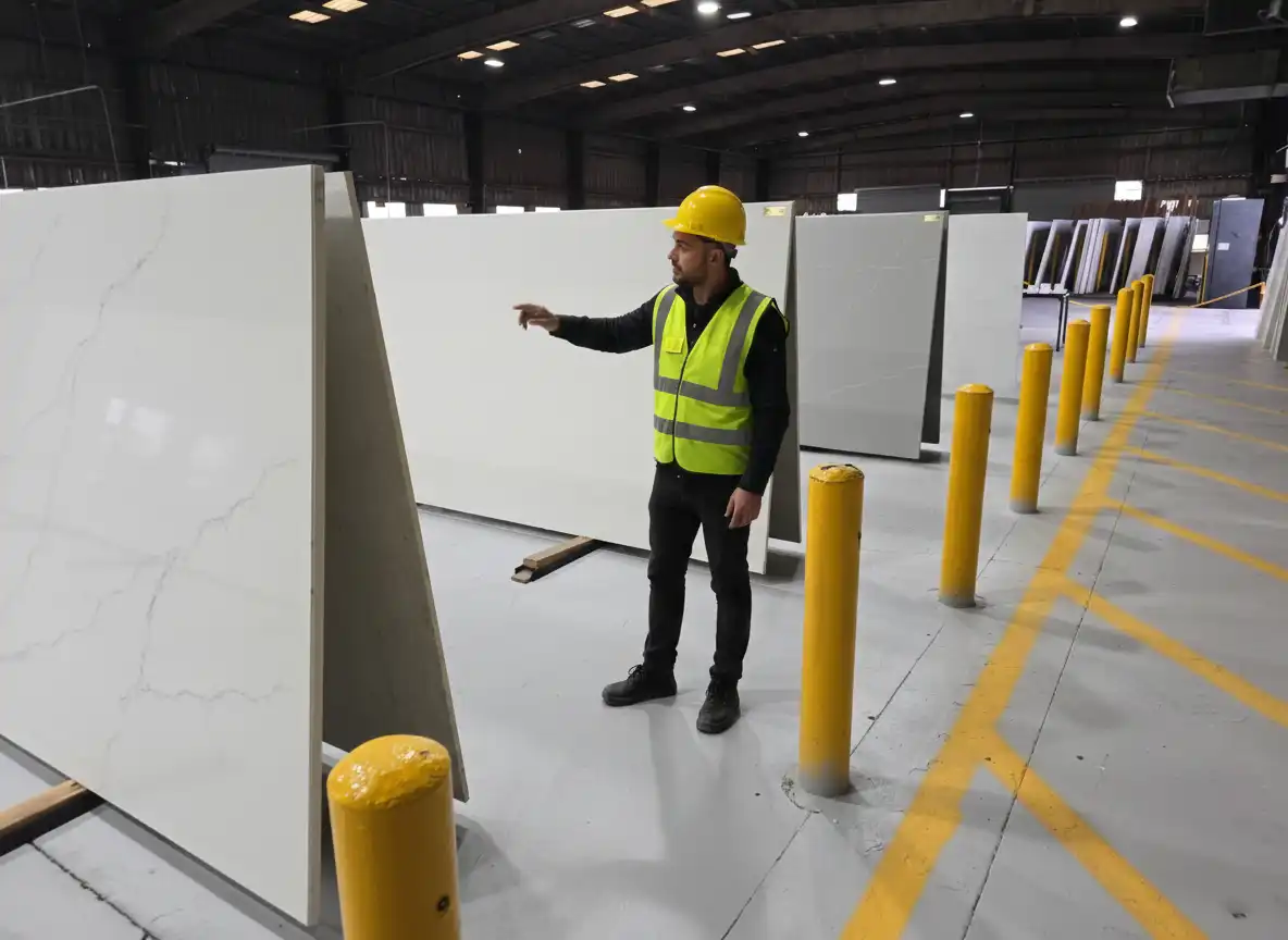 Engineered quartz slabs supplied with consistent sizing and finish to support efficient fabrication and installation.