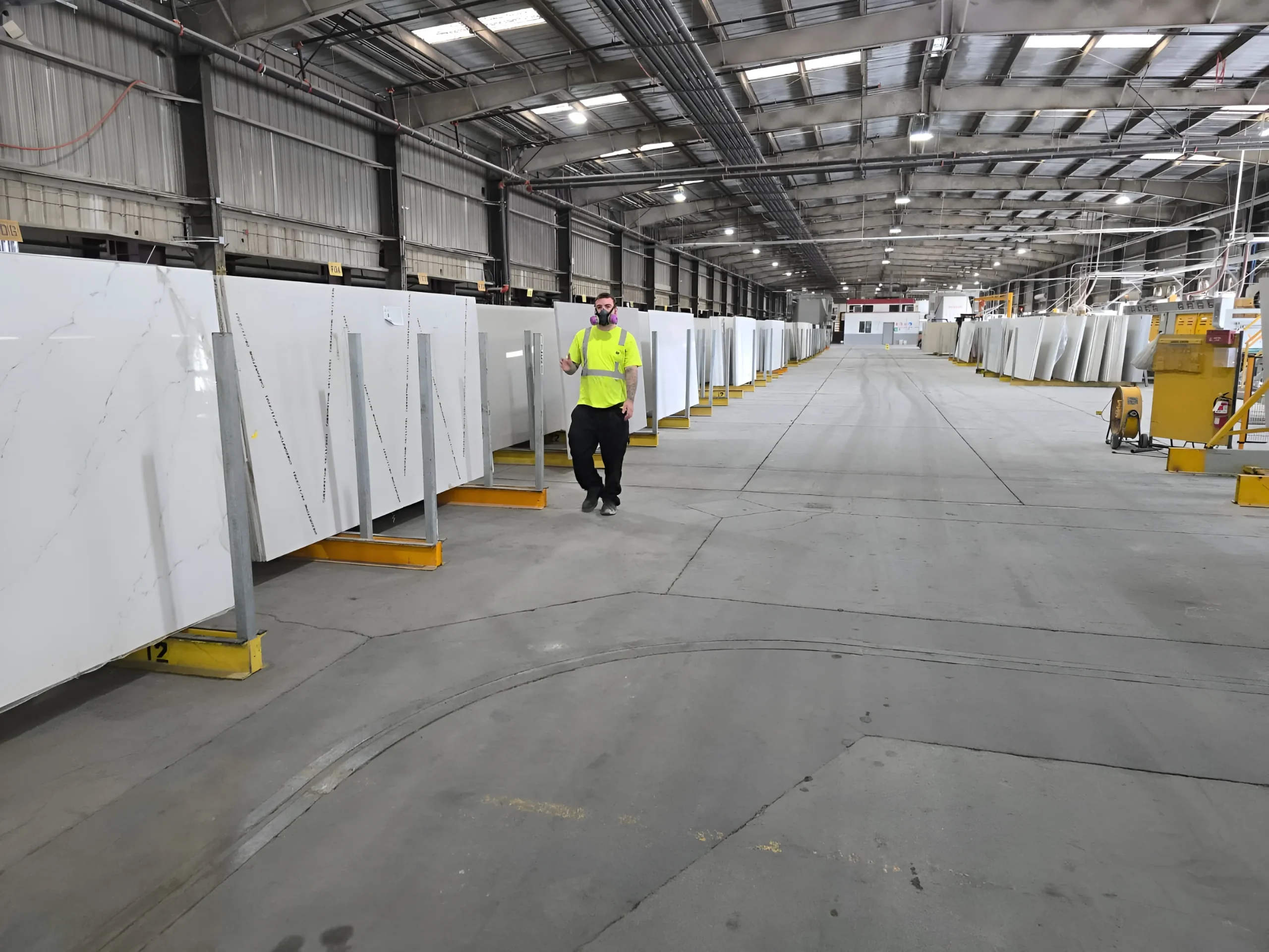 Safety is a core priority at BWM. Our facility follows OSHA requirements and California workplace regulations, supported by safety training, PPE use, and controls specific to engineered stone manufacturing.